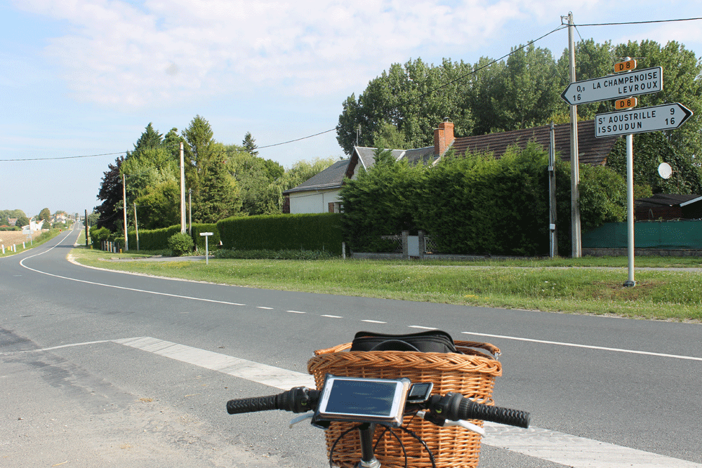 Partie de Saint-Amand-Montrond (Le Cher) l’année 2012, sur 2 jours, je fis étape à Levroux (Indre) – via La Champenoise, Baumiers, Neuvy-Pailloux, Ardentes et je terminais mon parcours à Châteauroux, devant l’église Saint-André.