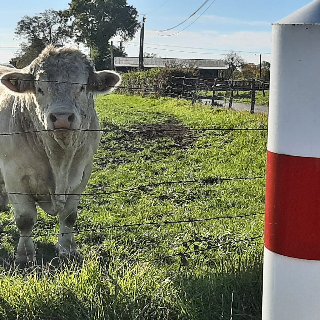 Partie en randonnée à Épineuil-le-Fleuriel, je suis passé le long de l’enclos, en pleine campagne du Grand Meaulnes. Croyez-moi si vous le voulez, les vaches ne montrent pas seulement de l’intérêt à regarder passer les trains… Preuve en images.