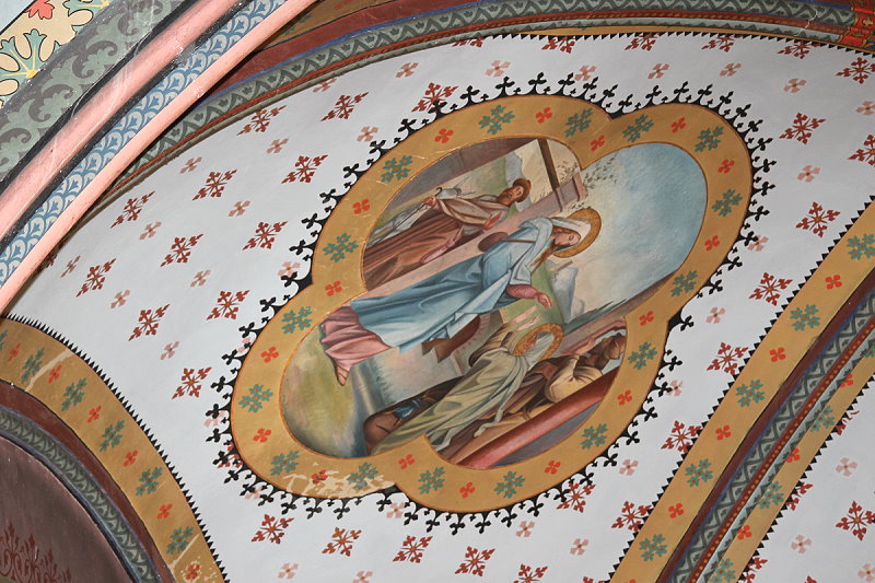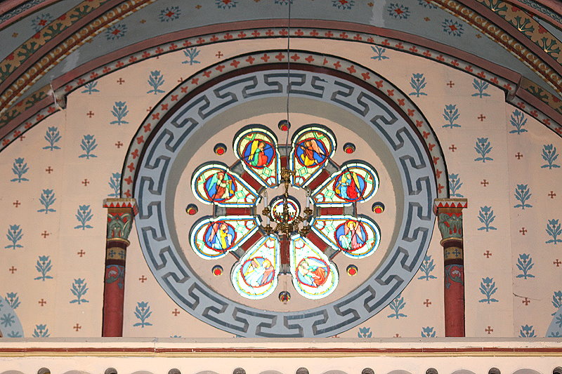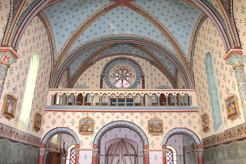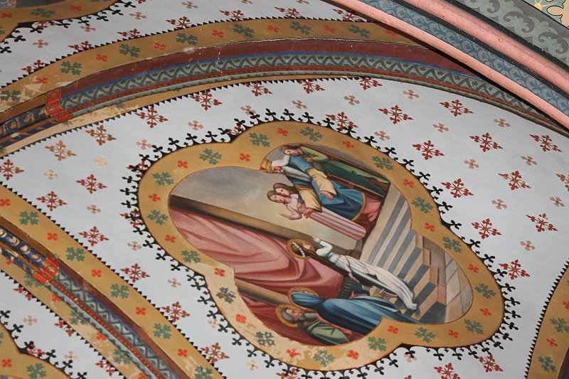 Cette décoration peinte depuis l’intérieur est de Raphaël Bodin, due également à un artiste Italien Tarniotti, qui demeura à Nevers, et encore, une belle restauration qui s’est produite en 2010, grâce à l’initiative de Jacques Viard.