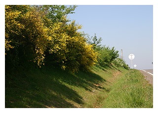 Un talus de genêts d’une bonne longueur borde la grande route.