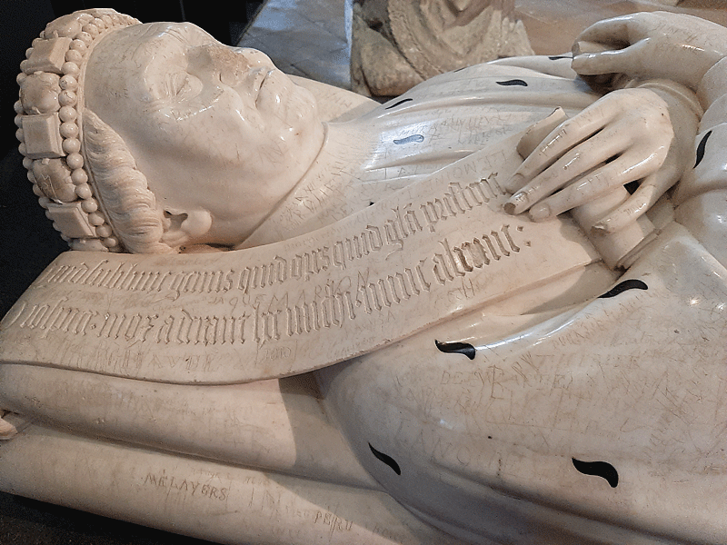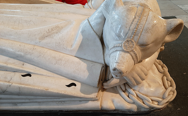 La découverte de ce remarquable patrimoine?, voici ce je vous propose. C’est ici que vous rencontrerez le gisant Duc de Berry représenté avec son ours totem veillant royalement tout près de lui, ainsi que deux personnages qui se font face de part et d’autre.