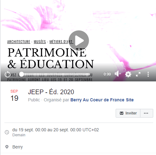 Merci mille fois encore pour ce site très complet où nous avons nos habitudes de visites pour le Berry. On vous souhaite un week end de patrimoine qui prob se fera autrement cette année. Nous vous remercions aussi pour les belles visites que vous nous avez procuré fin août. Magnifique et tant de souvenirs depuis, par le Berry roman! Nous penserons bien à vous et nous vous embrassons.