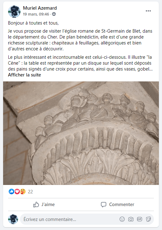 Plutôt que d’ouvrir une page quant aux partages que je fais sur mes réseaux, les évoquant ci-dessus en quelques lignes, je les ajoute désormais dans les éditos en cours, lorsque mes articles seront partagés d’une même période. De fait, cela renvoie parfois sur des articles thématiques Berry Au Coeur de France.