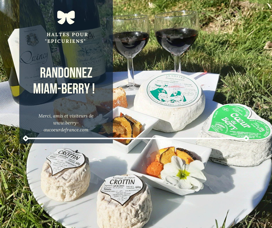 Randonnez gourmand (e) ! Des haltes gourmandes à faire depuis mon blog Miam-Berry, pour déguster le terroir, ainsi que des savoir-faire à destination de spécialités du Berry. Certaines d’entre elles vous emmènent d’ailleurs en balades. Sans oublier les marchés que j’ai testé pur vous, ainsi qu’une proposition de petite emplettes 100% berrichonnes. Haltes pour épicuriens…