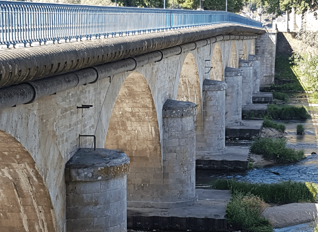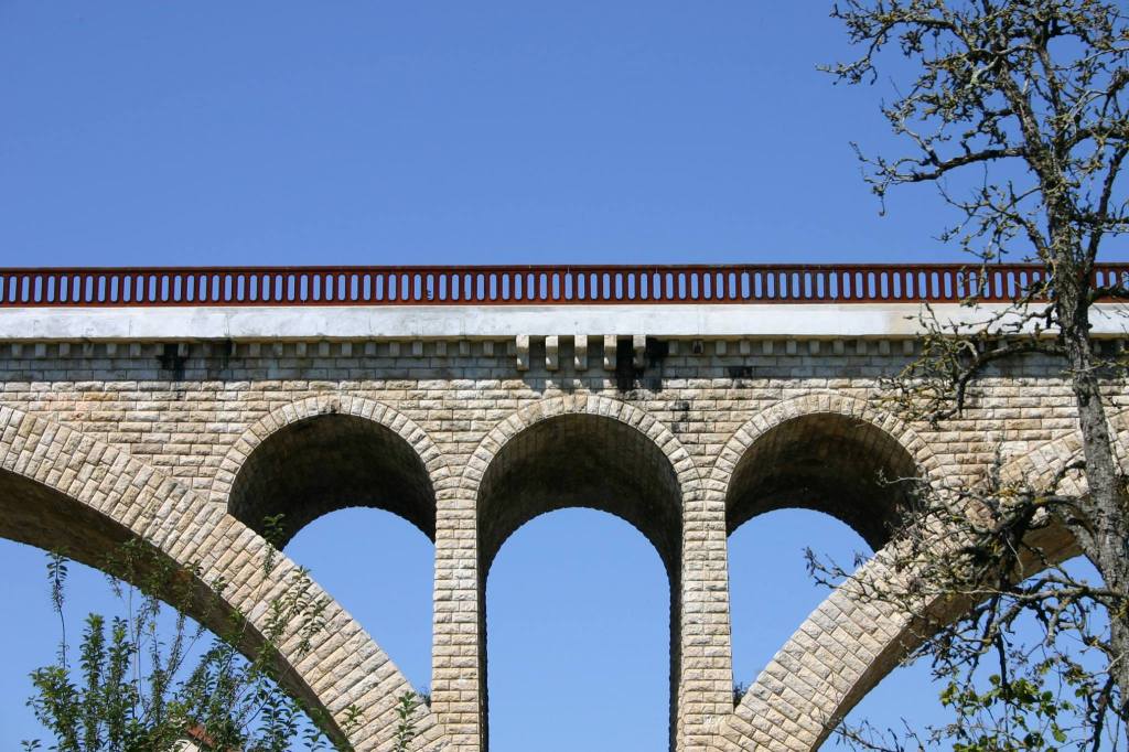 Le bel ouvrage qui surplombe les jardins environnants de particuliers, je l’ai photographié lors d’une de nos supères randonnées cyclo, avec des amis. De belles pierre à bossage recouvrent l’ensemble qui enjambe le Cher, ouvre le tronçon reliant Saint-Flo à Issoudun, via 15 arches en plein cintre mesurant 25 m de haut, pour une ouverture de 30m. Joli tout plein dans le paysage environnant !