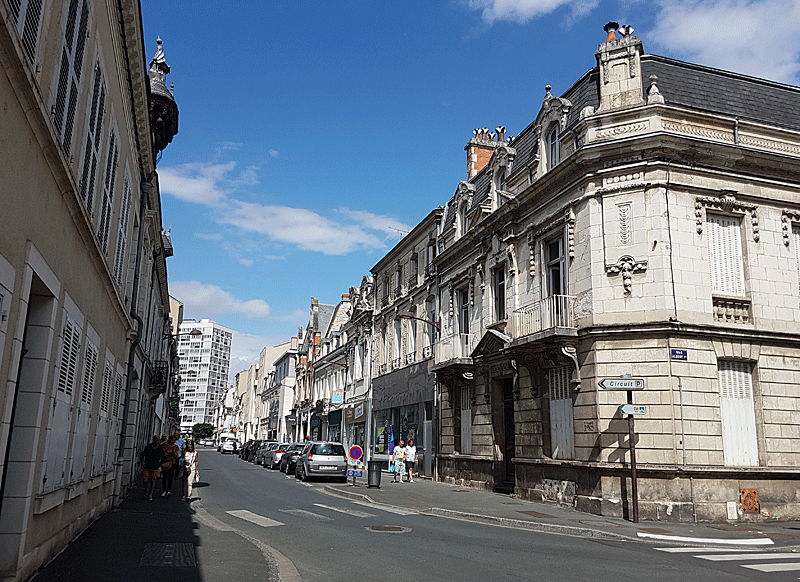 Je traverses tout le parking de la gare et me retrouve ici, à prendre par son commencement cette très longue artère castelroussine qui vous conduira également, de toute sa longueur, dans le quartier le plus animé de la ville, bordé par une foultitude de commerces. La voyez-vous déjà se rapprocher de vous ? La haute tour blanche qui se distingue au rythme de votre pas à pas.
