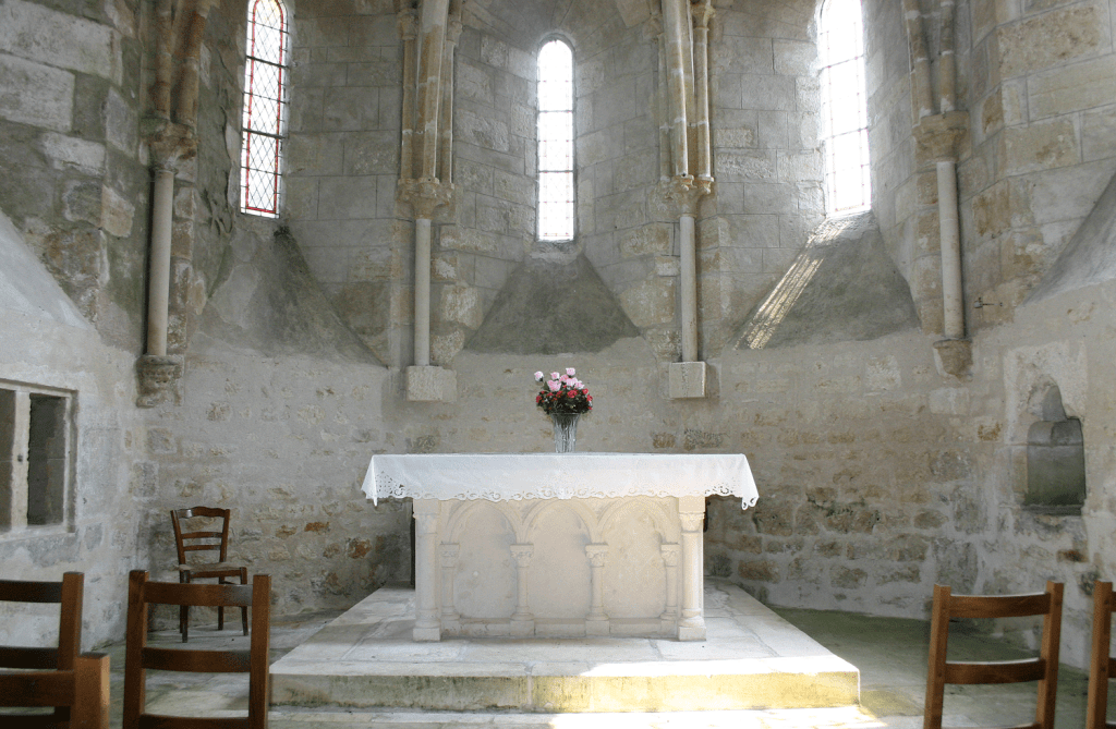 Le plus intéressant de la visite se rencontre dans la partie la plus primitive de l’édifice, une fois l’arc franchi et ouvrant le chœur daté du XIIème siècle Deux travées à pans coupés notamment, et chœur qui retombe sur colonnes engagées.