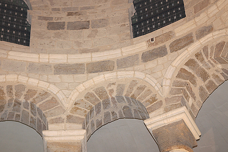 Au second étage, sont d’autres colonnes. Elles se trouvent unies entre elles par des « arcs plein cintre » – voir sur les photos – pour arriver au terme de la puissante construction.