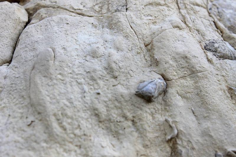 Petite trouvaille : alors que je prospectais le lieu, dans l’espoir de… Voici de quoi ravir ma quête – sans mon pendulaire cette fois. Nous sommes ici en présence d’un calcaire non friable. Sans être particulièrement fossileuse, j’allais tomber nez-à-nez avec ces quelques modestes échantillons, ramenés seulement à la maison par ma boîte à clic. C’est passionnant de partir à la pêche de la sorte ! Toutefois, je ne crains jamais de procéder patiemment avec méthode. Au terme de ma sortie, j’étais quasi convaincu qu’il pouvait s’en trouver d’autres de ce même augure. Seulement, avec la végétation qui y a élu domicile… Bref !