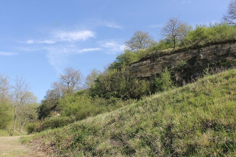Voilà. Comme qui dirait, si, en arrivant, vous longez sur votre gauche ceci, c’est que vous êtes arrivé. Du site lui-même jusqu’au Petit Patrimoine, j’ai photographié plusieurs points de vue. L’occasion de faire découvrir, aussi, à vous qui n’allez pas le pouvoir physiquement, éloigné(e) de notre province – ou que sais-je encore, le promontoire et son plateau calcicole en partie de droite, les fours à chaux et petits fossiles que je prospectai sur la voie. Je vous montre tout cela. Ma première demeure St-Amandoise, que nous faisons construire, avait pour revêtement ce que l’on appelle de « la chaux grattée« . C’est très esthétique et fin, fait les façades bien blanches.