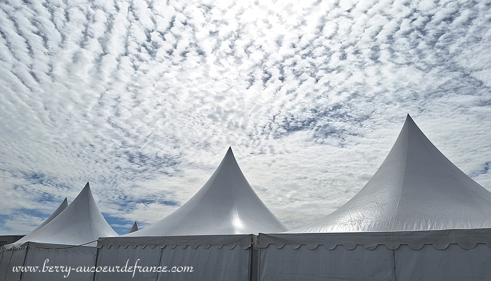 Une tente de réception – spécialement installée pour accueillir des invités durant l’événement – jouxte les chapiteaux événementiels ci-dessus.