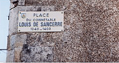 Le circuit commence à l’Esplanade César, puis va par la rue des Trois Piliers. Sancerre construite sur son piton, est jalonnée d’une multitude de rues et ruelles où tout invite ! Puis on rejoint la Place du Connétable Louis de Sancerre. Ainsi désignée en hommage à Louis de Sancerre (1340-1403), compagnon d’armes de Du Guesclin. Maréchal de France en 1368, connétable en 1397, Louis de Sancerre, honneur insigne, a été inhumé dans la basilique Saint-Denis près du roi Charles V, son ami qu’il avait servi. De la place du Connétable, on voit la Tour des Fiefs. D’ici, nous reprenons les rues pour faire une halte devant la Tour, mais que nous n’aurons pas visitée (en visite un dimanche à l’époque).