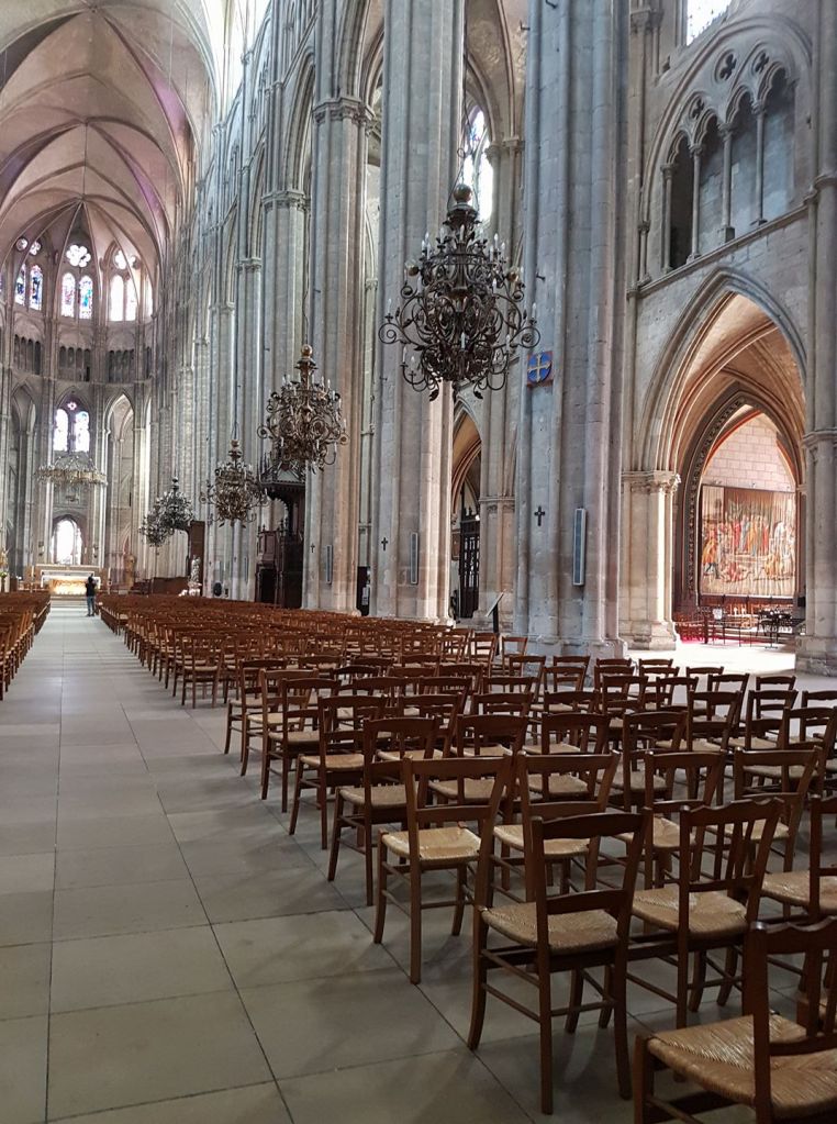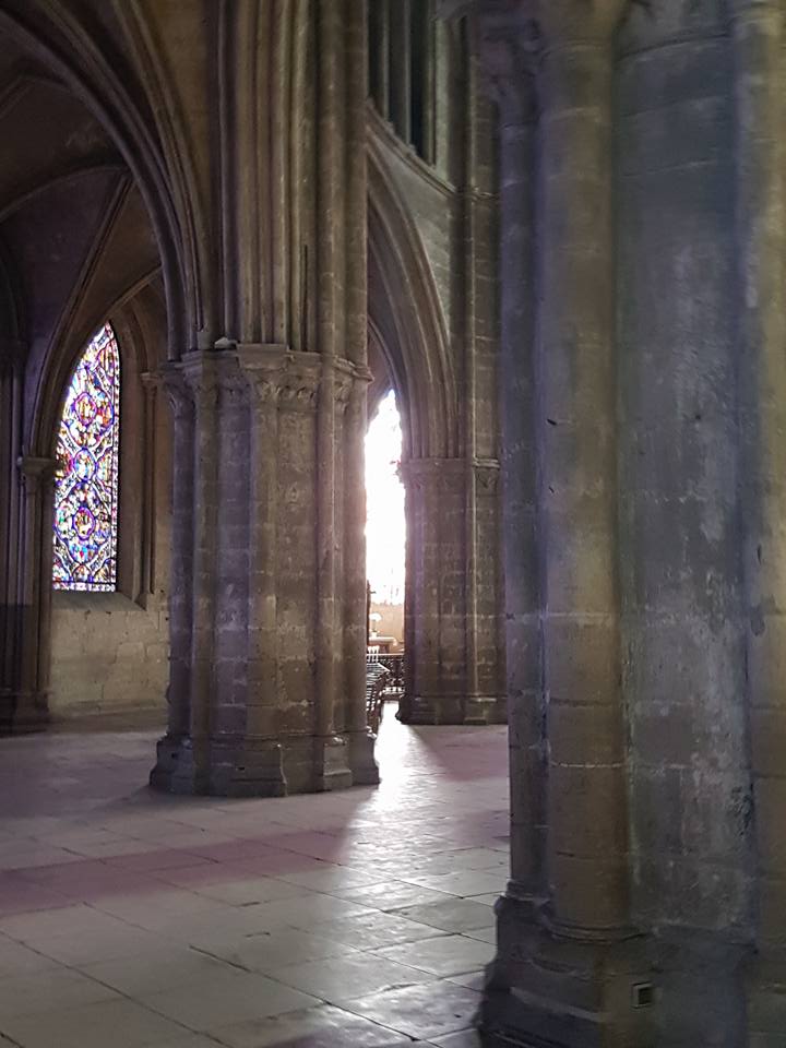 Faisant suite à une longue contemplation des deux façades extérieures, d’abord par le parvis nord, puis en dirigeant mes observations vers le chevet depuis les jardins de l’Archevêché, me voici à l’intérieur, commençant, avec toute la patience requise, la visite. Tant de choses à parcourir ! Certains d’entre nous y reviendrons, avec leurs souvenirs allant avec. Il peut parfois être difficile de conseiller un sens de visite, selon que l’on se présente devant la façade occidentale ou à son opposé. D’ores et déjà, bonne visite !
