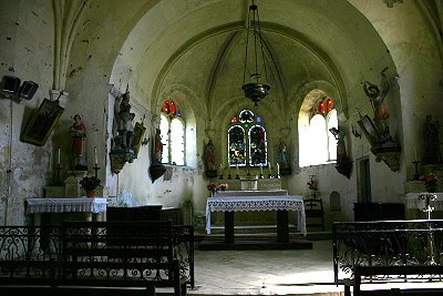 Dans le sol sont insérées deux pierres tombales aux longues épitaphes. Sinon, et comme en toutes églises, on y trouve une série de tableaux, un chemin de croix peint.