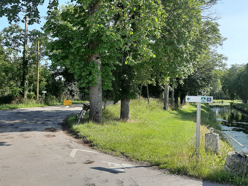 D’ici se présentez deux possibilités : soit que l’on met les roues sur la voie de retour et sens inverse d’où nous arrivons, soit que nous décidons de repartir par la petite route de campagne légèrement en épingle à cheveux, une fois avoir franchie la dernière écluse, en traversant celle-ci et rejoindre la petite route en contrebas, allant vers la gauche.