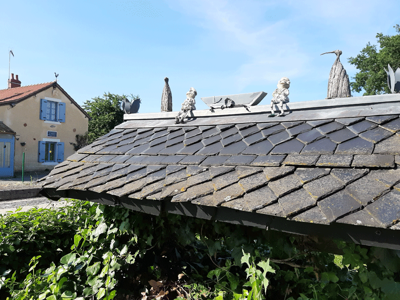 Lorsque vous y passerez, ne manquez pas d’aller jusqu’au puits couvert, où ces petits personnages vous souhaiteront la bienvenue.