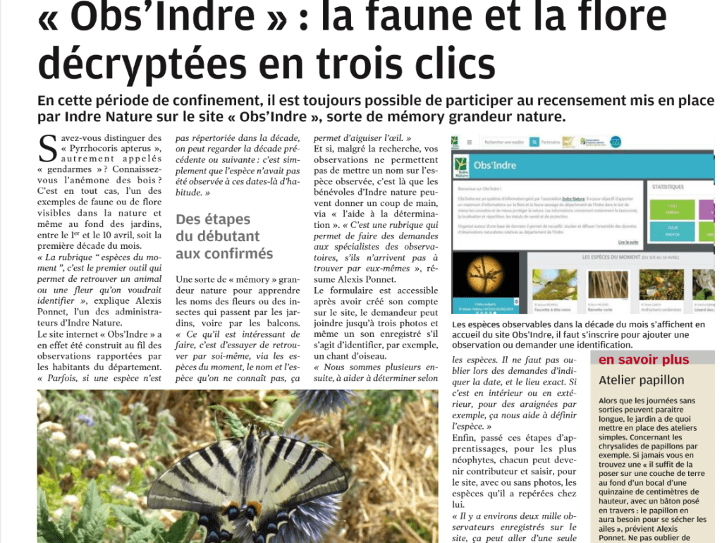 Un ami de l’Indre m’a fait parvenir l’article issu de la NR du jeudi 30 avril 2020.