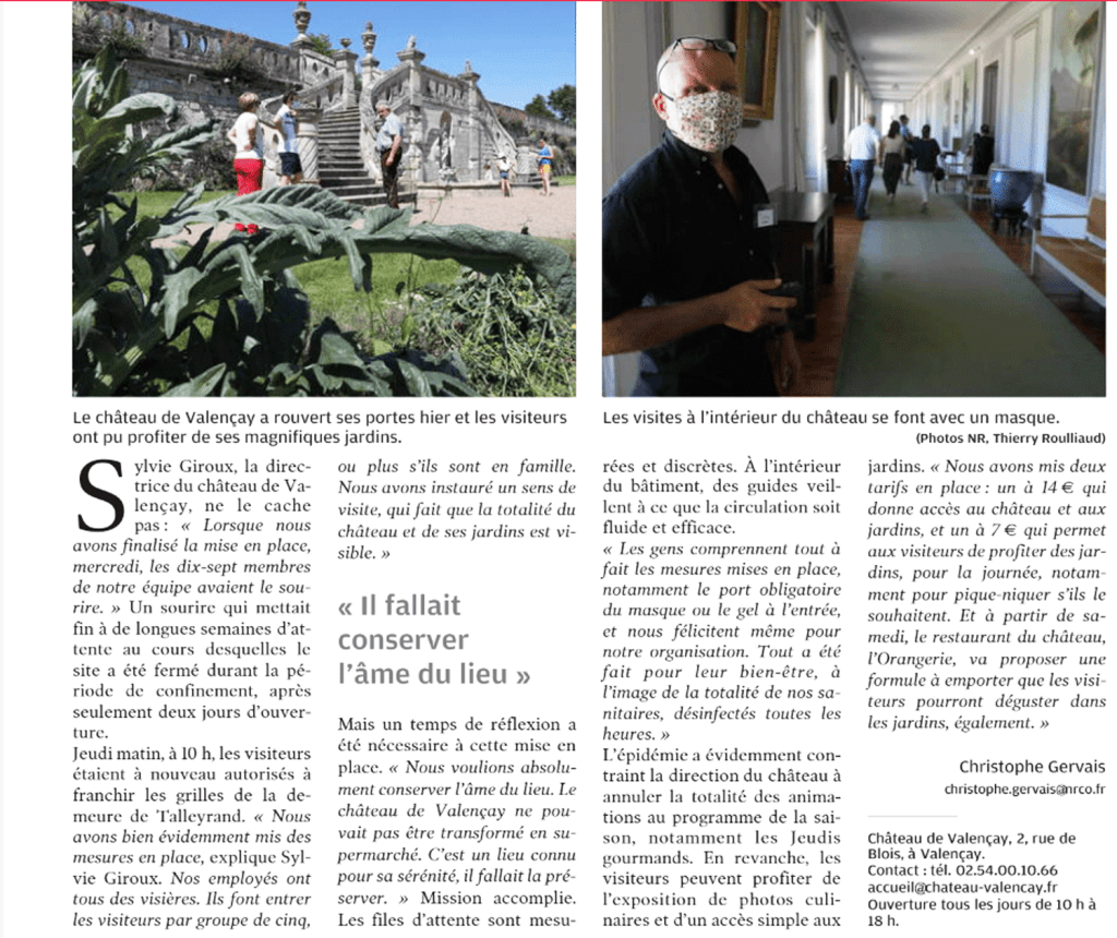 [Vu dans la presse] « Château de Valençay » dans « Tourisme » La NR / 23/05/2020