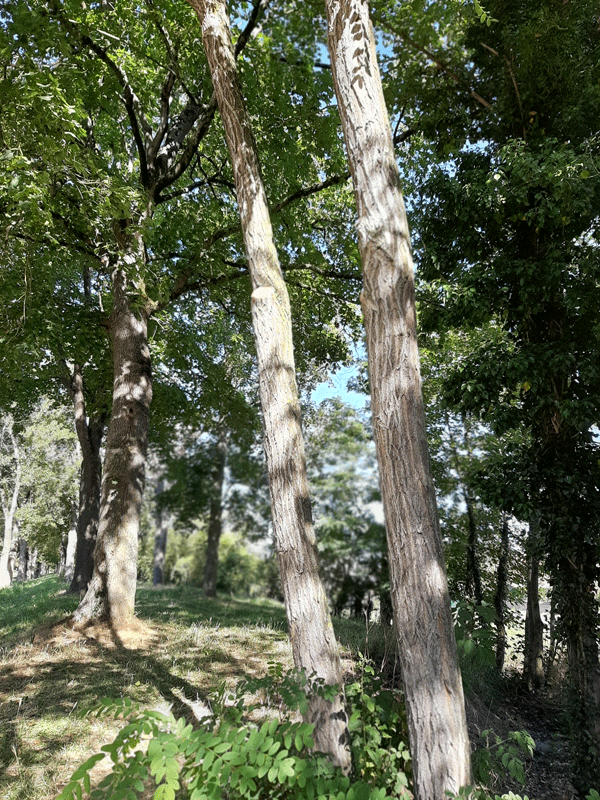 En fait, toute une colonie de petites feuilles ovales et souples, regroupées d’un bout à l’autre d’une longue tige dont l’ensemble créait ce vert tendre et lumineux très apprécié des amateurs. C’est un feuillu à l’esprit très naturel qui, s’il n’est pas guidé tel un arbre, va sauvageonner un peu, c’est pourquoi je n’en ai pas au jardin. C’est aussi de l’ombrage non négligeable sur le parcours du canal.