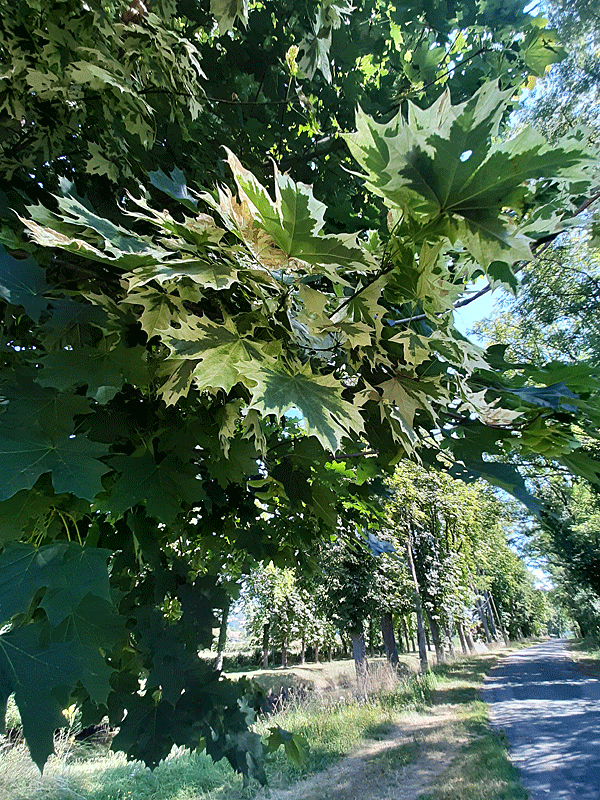 L’érable est toujours d’un très joli feuillage. Celui que je rencontrais, ci-dessus, est situé au niveau de la petite route juste avant d’arriver à l’écluse du Breuil. Nommé aussi Acer, il a deux caractéristiques : la forme découpée de ses feuilles qui présentent 5 lobes, et ses fruits doubles munis d’une membrane. Un arbre réputé pour ses tons en duo souvent (photo), et celles flamboyantes de son feuillage en automne. Avoir un érable dans son jardin, est merveilleux ! C’est vraiment un très bel arbre… Et que vous dire du délicieux sirop d’érable ?